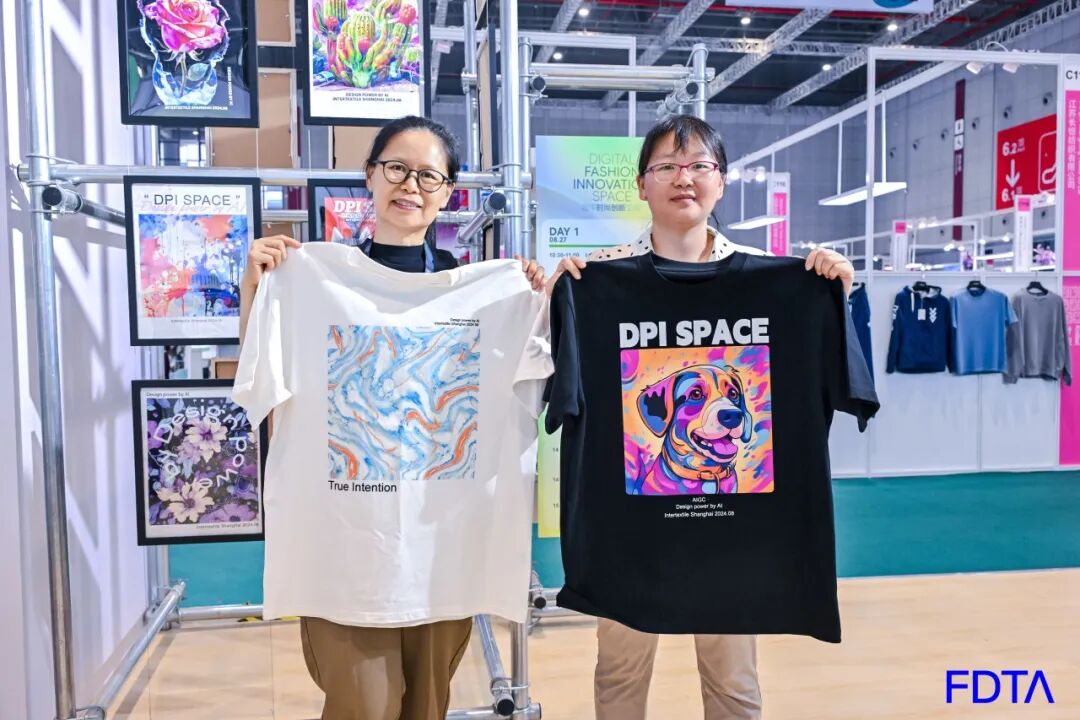值得一提的是,在展位现场设立的AIGC设计体验区,观众可以应用DPI SPACE人工智能创意平台创作时尚的艺术风格图案,将自己的想法与创意转化为独一无二的定制T恤,沉浸式体验AI图案设计的神奇之处与数字纺织的独特魅力。
