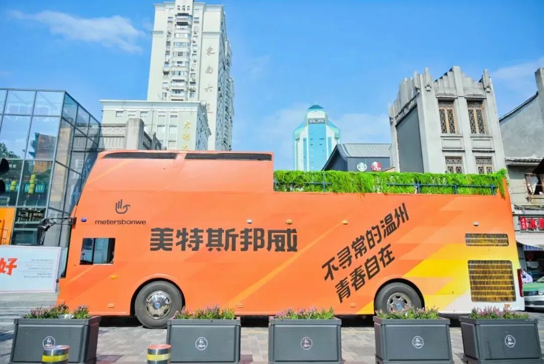 美特斯邦威1995年诞生在温州,三十年前在温州起点,三十年以后再一次在温州做新的开始。1996年,美特斯邦威租赁巴士促销,成为了温州街头一道亮丽风景线,也是当时温州市民的青春记忆。时隔28年再次租赁巴士从五马街再次带回28年前的温州巴士巡游,重新回到带回那个记忆里。