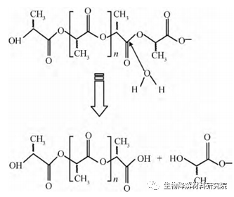 PLA自身不易被微生物、酶等直接降解,其被降解前需先行水解。PLA吸水后,其大分子主链中的酯键首先水解断裂