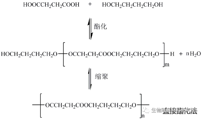 该方法合成工艺步骤简单并且合成的PBS产物分子量较高,是工业生产中使用的较为广泛的一种合成方法。