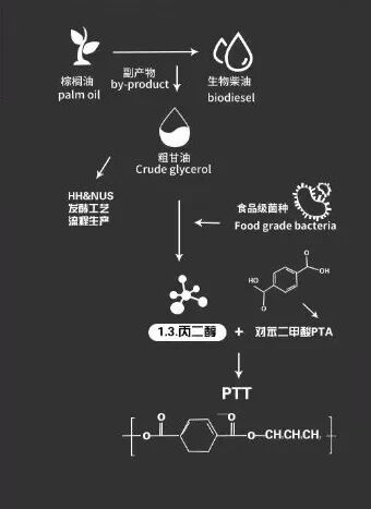 PTT(聚对苯二甲酸丙二醇酯)在纺织业备受关注,其含有37%的生物基原料,与石油基尼龙聚合物相比,PTT在生产过程中少消耗30%的能源、少排放63%的二氧化碳温室效应气体。性能上,PTT分子结构表达出近似羊绒的柔软手感、具有天然的拉伸回弹性,可作为主材在服装领域大量应用。由于生物基属性以及优越的综合表现,PTT在美国评为六大化工新产品之一,被誉为“聚酯之王”。