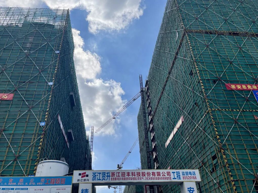 浙江迎丰科技股份有限公司优势兼并绍兴布泰纺织印染有限公司产1.29亿米高档印染面料异地新建项目,位于柯桥滨海工业园区,项目于2024年2月开工建设,用地面积115亩,建筑面积23.43万平方米,计划总投资10亿元,目前主体厂房已经结顶,预计在明年一季度陆续投产运行。