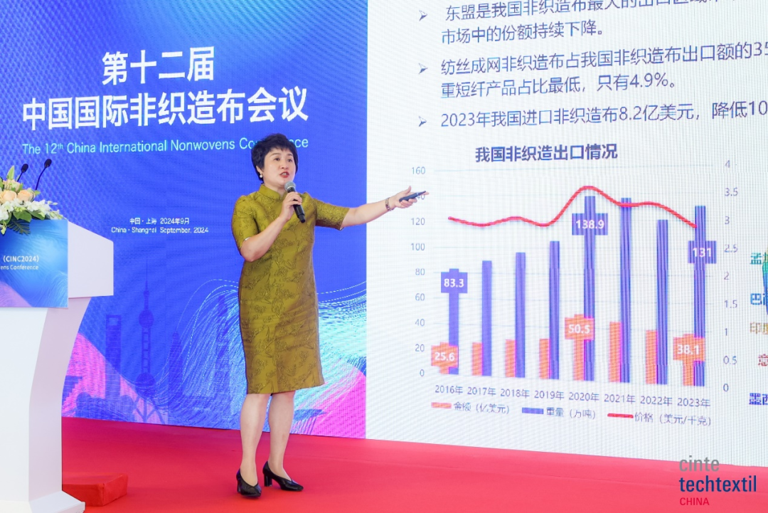 非织造布是产业用纺织品的重要组成部分,凭借其优越的性能成为医疗健康、家居生活、环境保护、土工建筑、工业生产、交通、能源、农业等领域内的关键材料。为深入落实新质生产力发展要求,推动非织造布行业高端化、智能化、绿色化、融合化发展,助力纺织现代化产业体系建设,9月19日,第十二中国国际非织造布会议(CINC2024)于CINTE2024展会期间召开,会议围绕科技创新、产业创新、绿色发展和市场趋势等热点话题,共同探讨发展非织造布新质生产力的路径和行动方案。