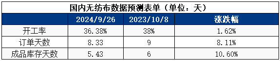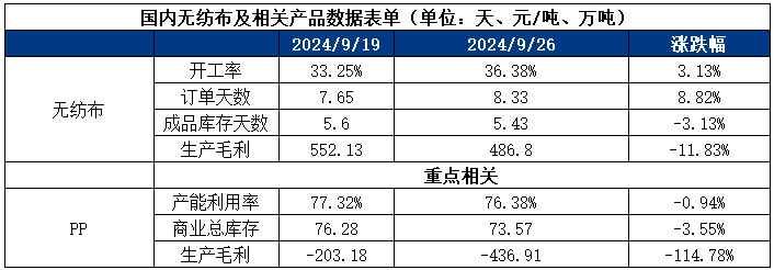 宏观面货币宽松利好驱动,市场情绪驱动偏向正向发展。供应面检修利好密集,缓和市场需求端疲软态势。因成本端尤其油制成本存松动风险,叠加节后库存累计影响市场心态,部分获利盘存让利出售压制价格重心驱动。节后需求端在国家降准、存量房贷下调等利好带动下,需求端存缓慢上移空间,节后聚丙烯市场重心或缓慢上移。终端需求随天气转凉和传统旺季来临缓慢启动,医疗卫生、汽车内饰、包装等PP无纺布需求有增加预期,且国外国内货币政策刺激偏多,宏观政策端大幅提振市场情绪,PP无纺布企业订单或继续增加,预计节后PP无纺布市场价格或走势偏强。
