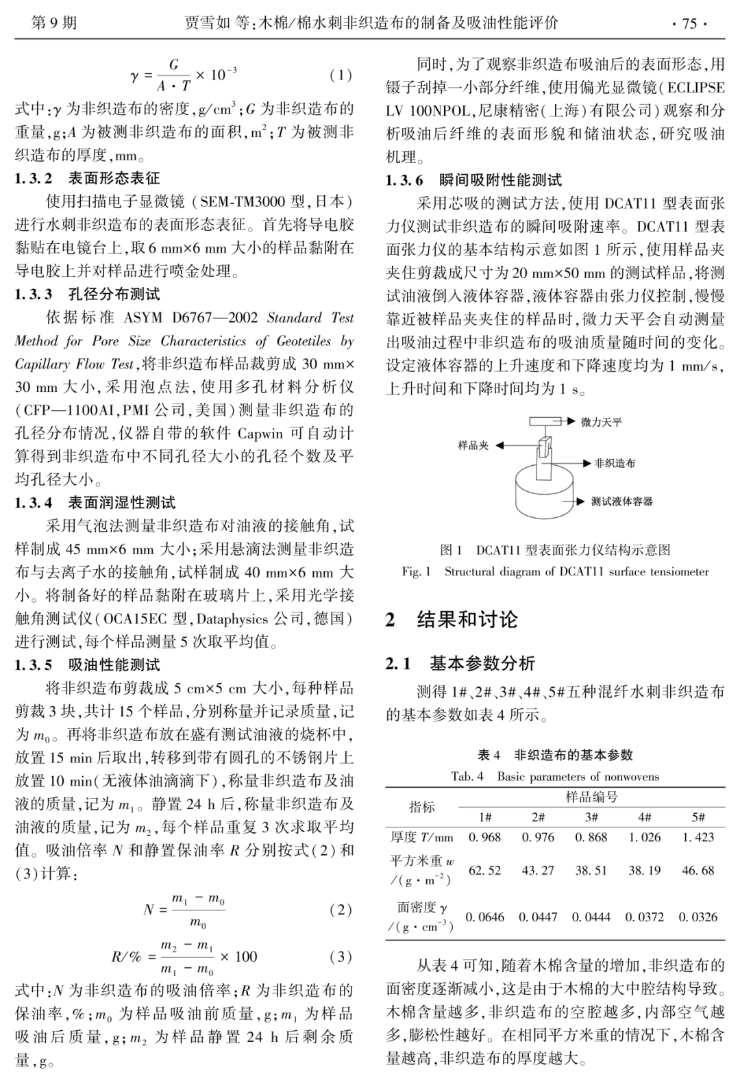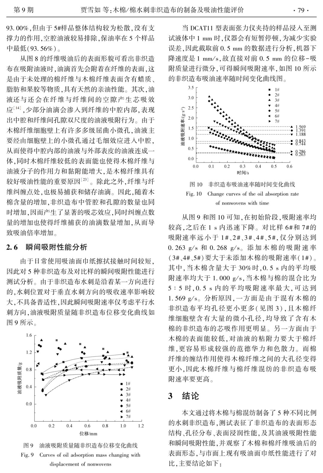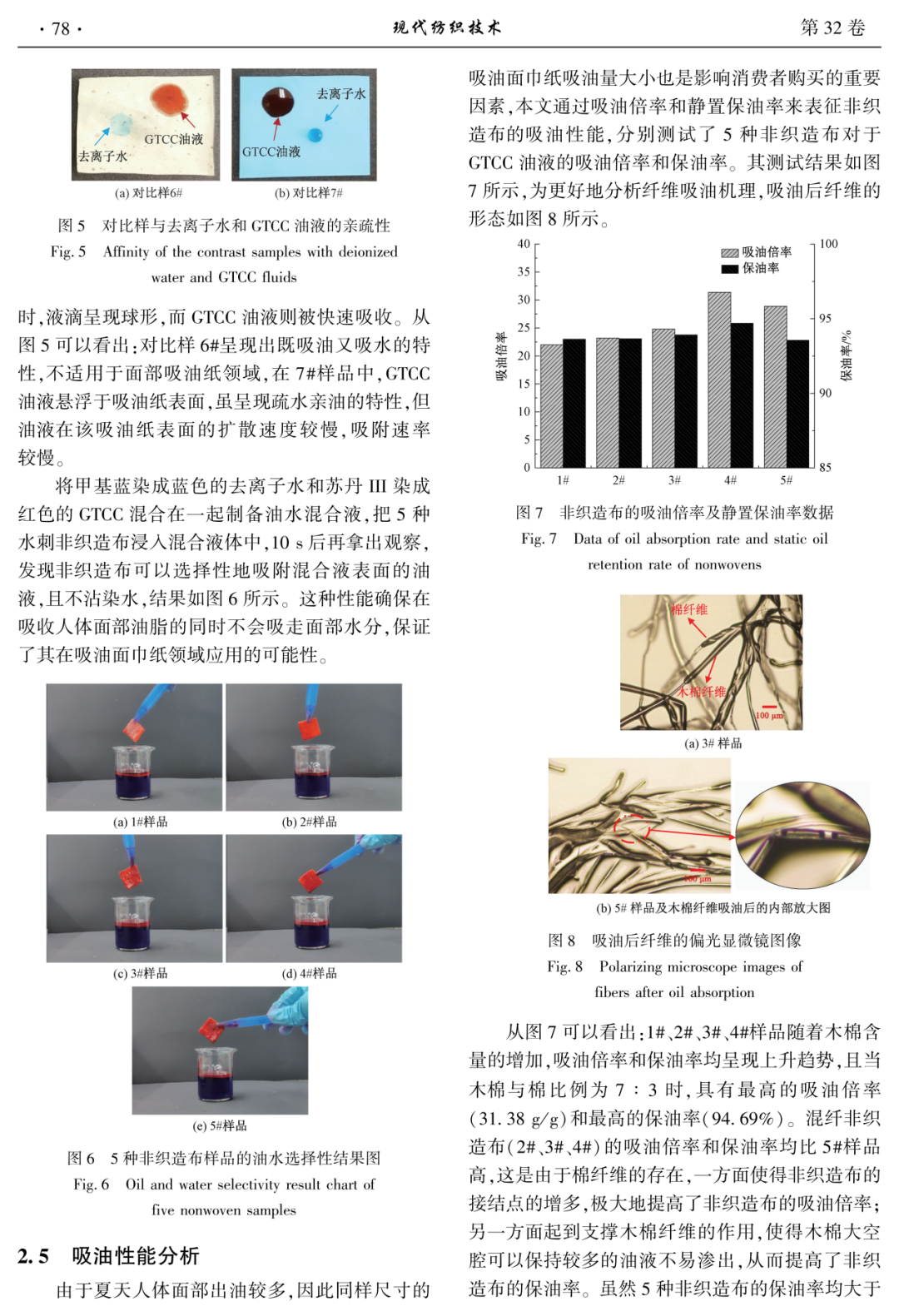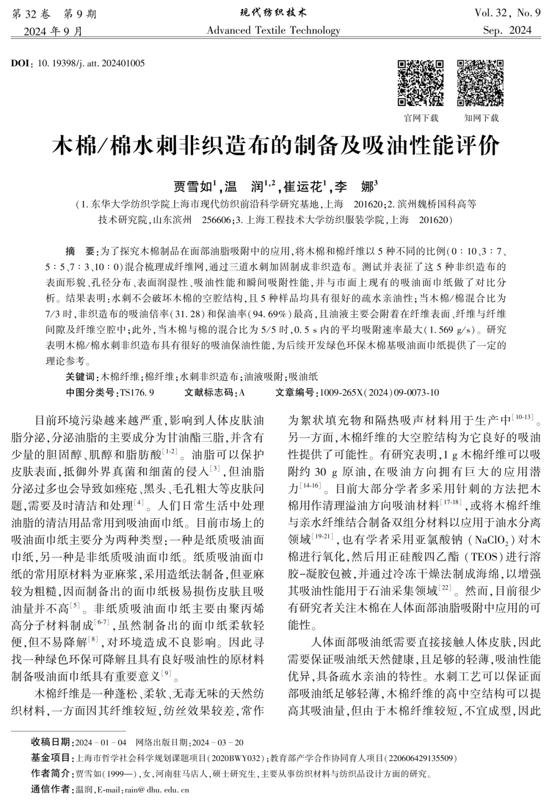 现代纺织技术 | 温润团队 | 木棉/棉水刺非织造布的制备及吸油性能评价