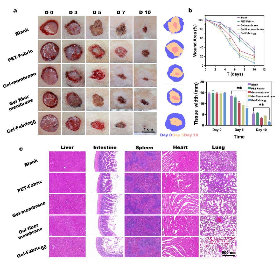 图4新型水凝胶非织造布闭合全层皮肤损伤