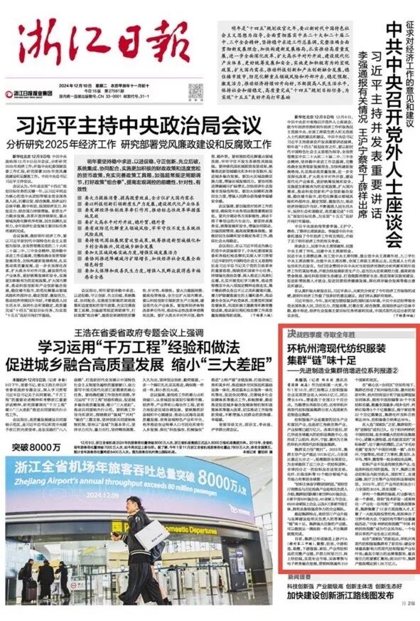 转载:浙江日报头版刊发:环杭州湾现代纺织服装集群“链”味十足