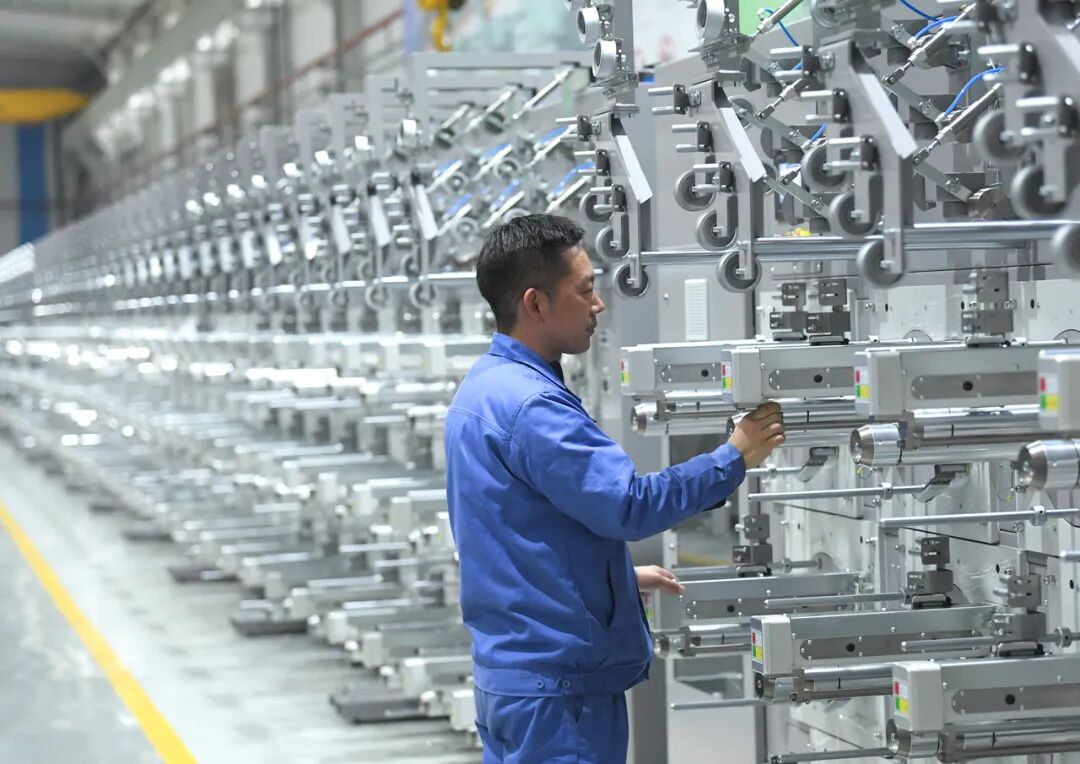 绍兴市柯桥区,技术人员在对自主研发生产的收丝机进行调试。新华社记者 翁忻旸 摄