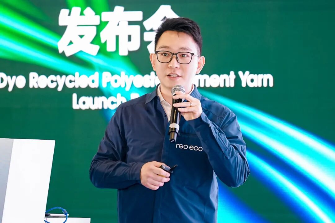 作为一家高分子材料循环再生的环保科技公司,佩浦拥有100%垂直一体化的全产业链工厂,年产25万吨再生涤纶长丝,只专注于再生产品的生产,确保了产品的真实性和可追溯性。同时,佩浦还积极采用清洁能源,如光伏和风力发电,努力打造绿色工厂,为环境保护贡献力量。会上,REO-ECO联合创始人王志鹏作“专注再生,打造再生涤纶全产业链”报告,重点分享了佩浦科技在再生涤纶技术领域的最新进展和前沿探索。目前,佩浦已与东华大学、江南大学一起合作,共同开发全球领先的生物酶解法再生技术。该技术通过酶法降解将废旧涤纶分解成单体,再经过提纯和再聚合,实现废旧纺织品的永续闭环再生。王志鹏表示,生物法再生技术将进一步提升废旧纺织品的回收利用率,推动纺织行业的绿色可持续发展。