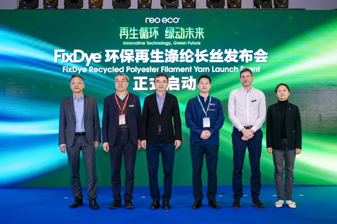 绿色是新时代的底色,循环再利用化学纤维是纺织服装产业链实现绿色发展的重要路径之一。3月12日,“再生循环,绿动未来——FixDye环保再生涤纶长丝发布会”在国家会展中心(上海)举办。中国纺织工业联合会副会长端小平,中国化学纤维工业协会副会长靳高岭,江苏洪泽经济开发区管委会主任刘兴春、副主任邓玉鸿,东华大学材料科学与工程学院教授王华平,江南大学教授吴敬,佩浦科技集团(REO-ECO)联合创始人叶国浩王志鹏,法国Kiabi sourcing development leader Thomas FILLEY,巴马格(苏州)总经理王伟东等参会。会上,REO-ECO发布了FixDye环保再生涤纶长丝。