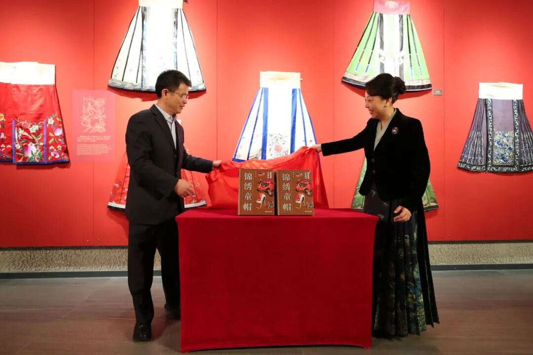 2025年3月12日上午,北京电影学院主办、山东省服装设计协会支持的“衣脉千年  数智焕新——中国传统服饰与数智演绎展”开幕,当代世界出版社倾力打造的《锦绣童帽:传世虎头帽文化图鉴》以“图书展示+文物站台+AI赋能”的新形式,在开幕式上对外发布。
