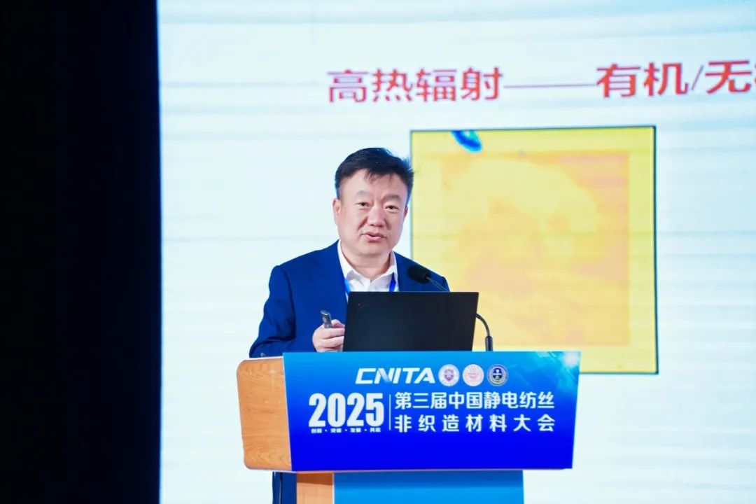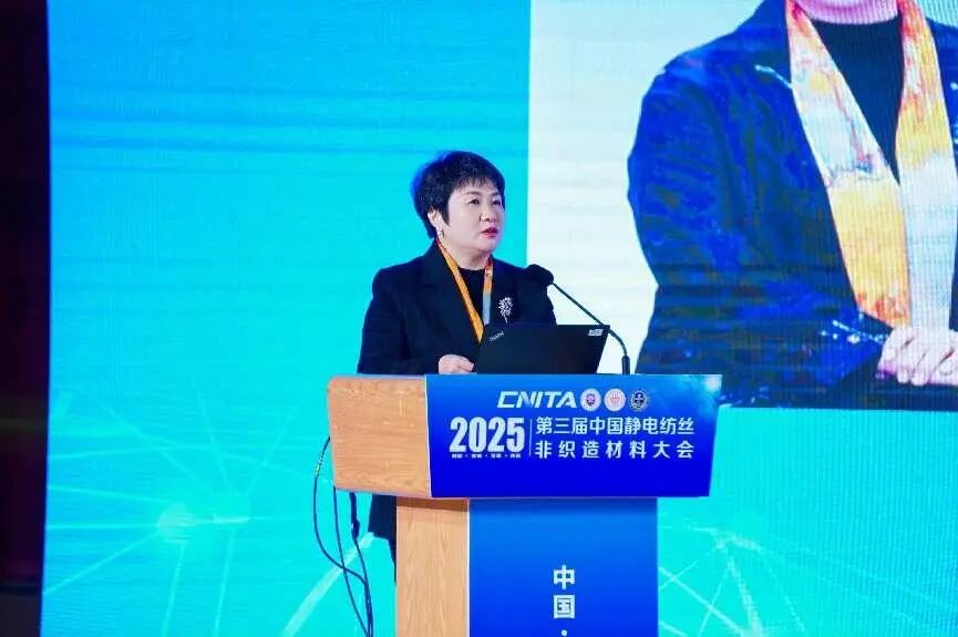 李桂梅致辞表示,面对新形势、新机遇,行业仍要通过科技创新,聚焦解决静电纺丝纳米纤维量产稳定性、产品功能性等问题;深挖产业化应用潜力,聚焦航空航天、新能源电池、生物医用、电子信息等高端前沿应用领域;关注国际发展大趋势,前瞻性布局静电纺丝产业发展的绿色化和低碳化;关注静电纺丝产业的标准化建设,通过标准不断引领和提升行业发展。