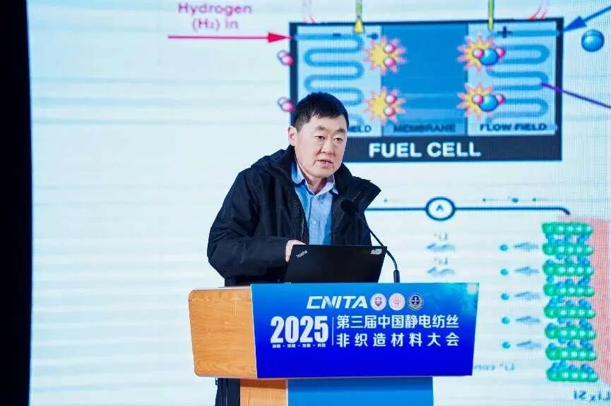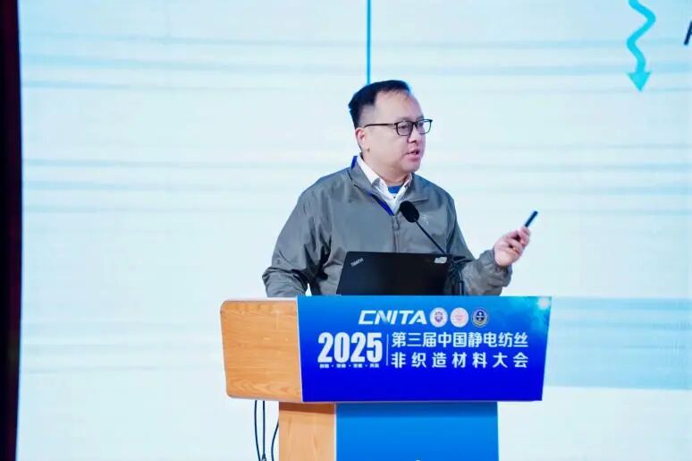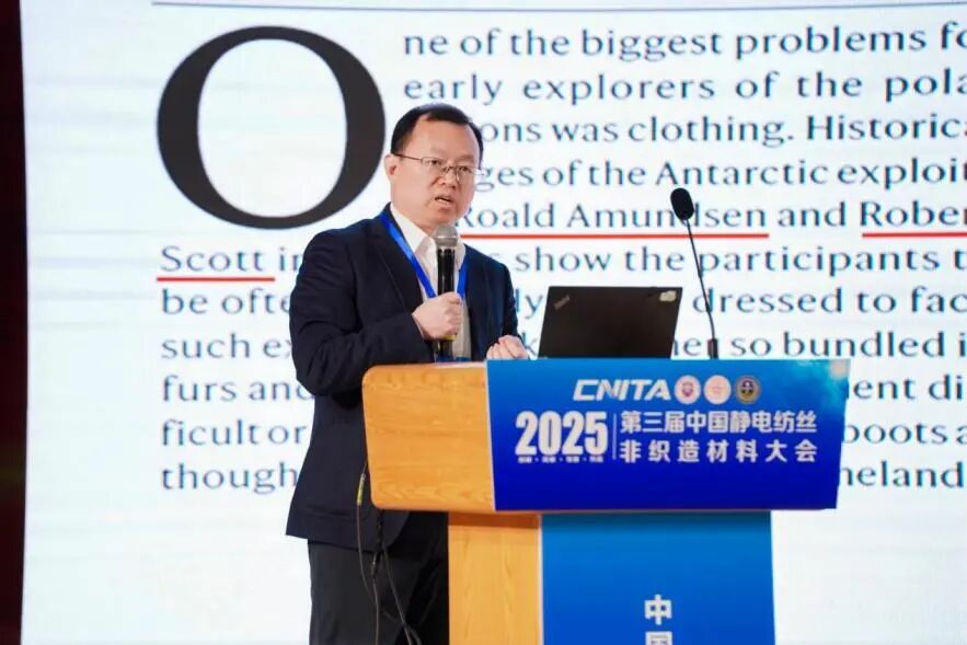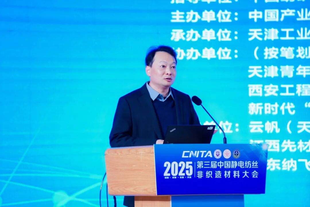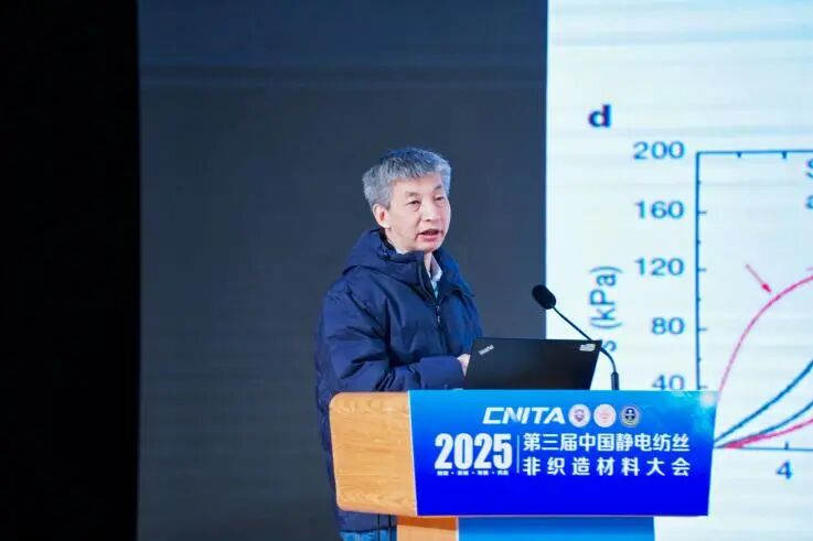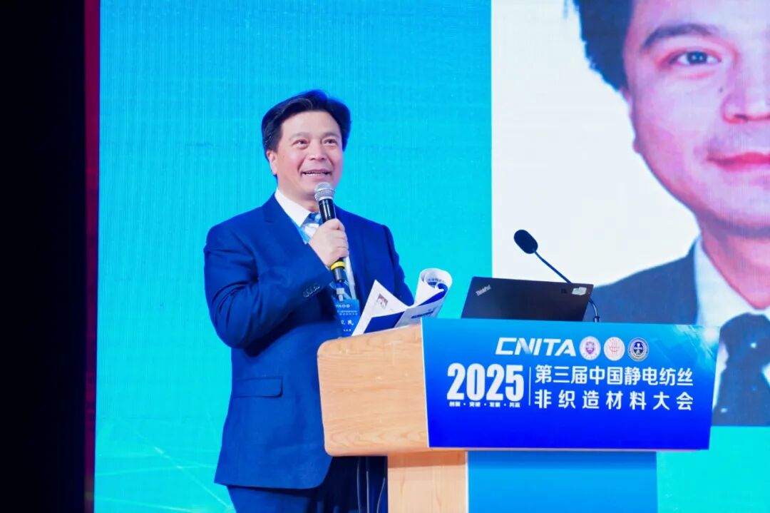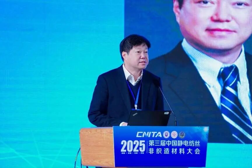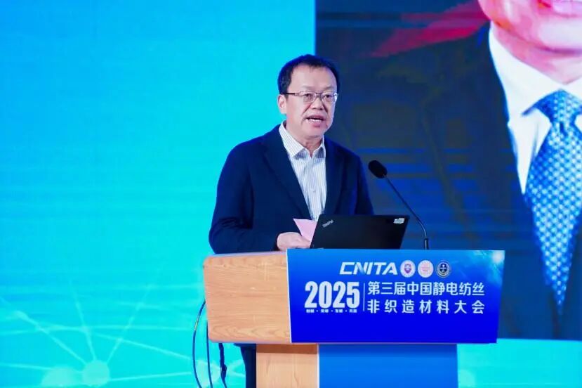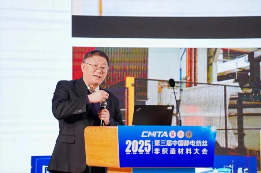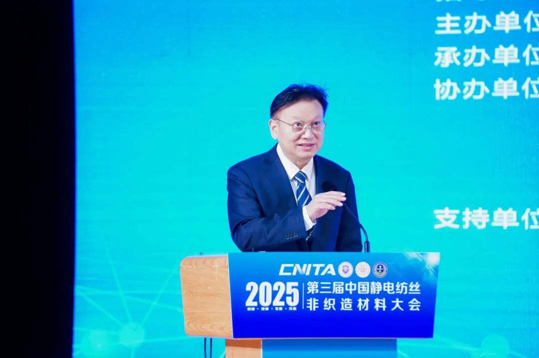丁彬致辞表示,我国静电纺丝非织造材料领域呈现出蓬勃发展的态势,产学研协同创新结出丰硕成果,未来将聚焦基础研究、中试转化与产业化应用的全链条衔接问题,通过搭建产学研协作平台推动技术路线探讨与资源整合。希望静电纺丝同仁打破学科壁垒,构建“纳米纤维+”的创新范式,突破纳米纤维材料高通量制备、低成本绿色循环等技术瓶颈,增大基础科研力度,积极将科研成果推向产业化应用。