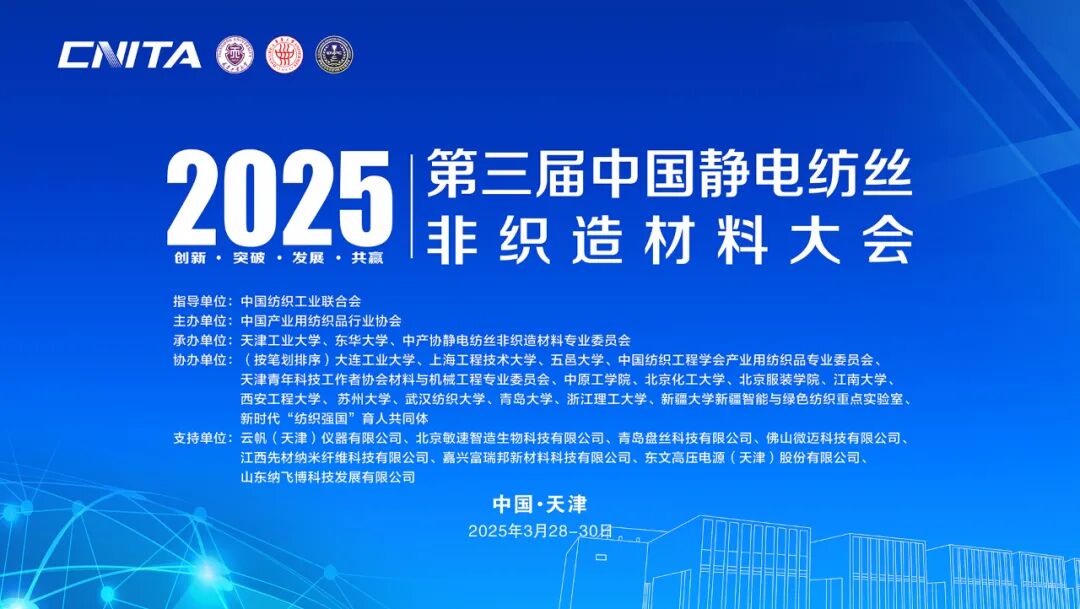 3月29~30日,第三届中国静电纺丝非织造材料大会在天津召开。大会由中国纺织工业联合会指导,中国产业用纺织品行业协会主办,天津工业大学、东华大学、中产协静电纺丝非织造材料专业委员会共同承办。