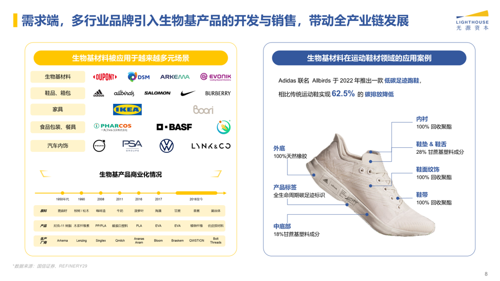 后疫情时代,越来越多的消费者意识到环境所面临的挑战,这越来越促使人们寻找由更可持续和环保材料制成的产品。通过这种方式,绿色替代品可以为行业带来机会,实现向使用生物基材料的转变——可再生且减少对石化产品的依赖。消费者行为向可持续发展的转变极大地推动了生物基材料市场的发展。此外,除了法规外,为推动生物基产品的商业化和规模化应用,各国政府和地区组织也正在出台一系列支持性政策。