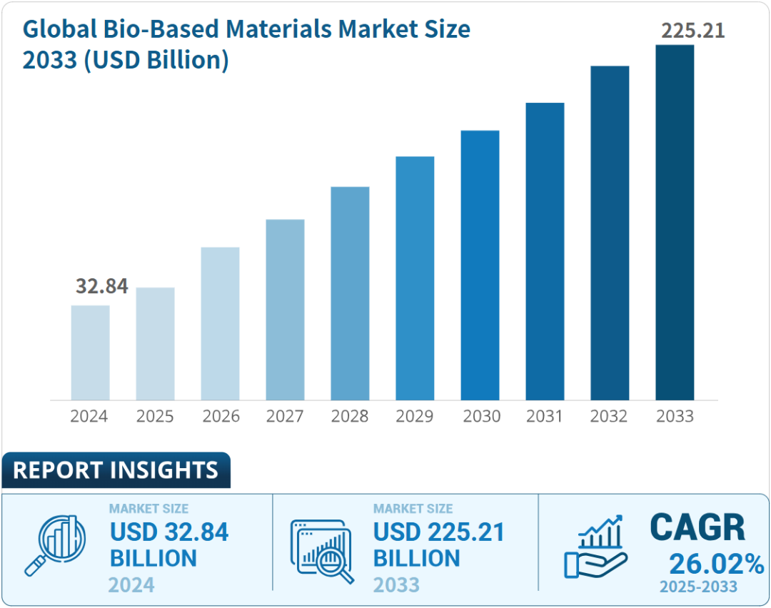 此外,欧盟碳关税CBAM机制倒逼企业采用低碳材料,生物基材料碳足迹优势凸显政策推动下,低碳经济将驱动生物基材料市场万亿蓝海,根据Business Research Insights数据,2024年全球生物基材料市场规模约为 328.4 亿美元,预计到2033 年将达到 2252.1 亿美元。