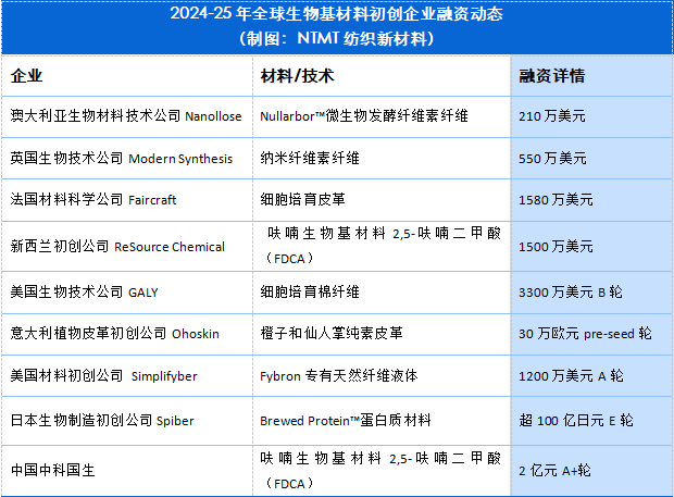 生物基纺织新材料以可再生生物质(农、林、海洋废弃物、副产物等)替代石油基原料,通过生物发酵、化学合成等工艺实现低碳生产。因其具有绿色、环境友好、原料可再生等优良特性,有助于解决当前全球经济社会发展所面临的严重的资源和能源短缺以及环境污染等问题。在政策红利、技术迭代、市场需求及全球低碳转型共同作用下,生物基纺织新材料企业受众多资本的青睐。其中,特别是日本生物制造初创公司Spiber,目前在 9 轮融资中筹集了4.89亿美元的总资金。未来,生物基纺织材料与人工智能(如微生物合成路径AI优化)、循环经济(纺织废料酶解再生)的结合,将进一步重塑产业格局。