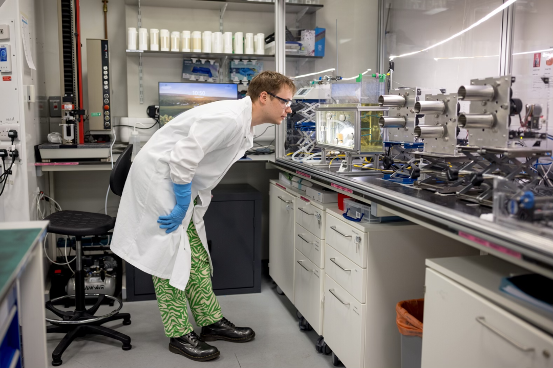 Solena Materials公司的高级材料科学家Liam Ives用合成蛋白质制造纤维。