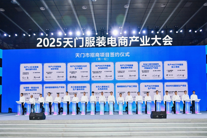 天门市委书记、市人大常委会主任纪道清介绍,天门文脉昌盛、产业基础雄厚,近年来多项指标居全国前列。当前,天门处于优势重塑期、资源集聚期、人气升腾期、赶超窗口期、干事黄金期“五期叠加”的关键期,且已经形成了“纺纱织造—面辅料—成衣加工—电商营销—跨境物流”的完整产业链条,正全力打造“服装设计之都、生产之都、营销之都”。未来,通过人工智能赋能,将加速实现“小单快返、柔性制造、AI直播”等创新模式同时,还将加快建设10个海外仓,目标2025年电商交易额达700亿元,2026年全产业链产值突破1000亿元,向“全球服装电商供应链中心”迈进。