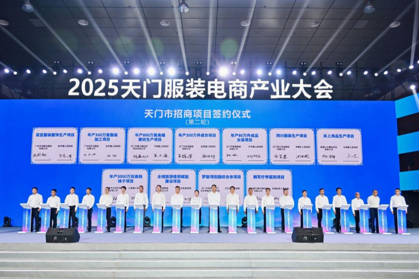 此外,服装电商服务商战略合作签约仪式与招商项目签约仪式也在开幕式上隆重举行。来自全国的人工智能技术企业、电商平台、供应链服务商等与天门达成多项战略服务合作。未来,签约企业将通过“技术+场景”的深度融合,进一步助力天门服装电商产业构建从研发到销售的全链条智慧赋能体系,为区域经济高质量发展注入新动能。