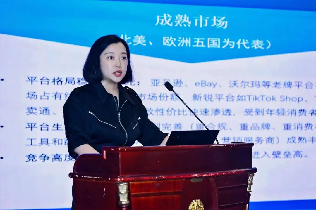 中国纺联流通分会副会长兼秘书长吴颖慧在分享中分析了跨境电商市场的现状和特点以及国内服装产业带如义乌、石狮等发展跨境电商的经验。在谈到产业带出海相关建议时,她认为产业带应加快建起“产业带+公共服务+出海营销”的产业生态,企业要走差异化的出海策略,同时要加快、加大政策扶持力度,并推动更多中小企业融入平台和生态当中。