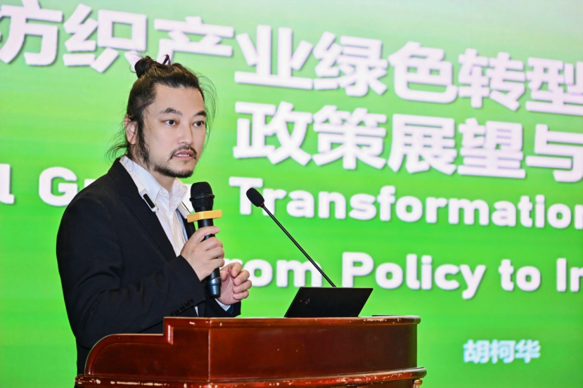 中国纺织工业联合会社会责任办公室副主任胡柯华围绕《纺织产业绿色转型的全球市场政策展望与实践》作分享,他为企业介绍了纺织领域的绿色转型热点,包括生产商延伸责任EPR——纺织品的循环回收、可持续产品评价和标识体系、绿色声明和打击“洗绿”等。他表示,行业在积极推进碳足迹管理、绿色技术研发及“30·60碳中和加速计划”,并通过标准制定、数字化平台(如产品数字护照DDP)提升全链透明度与循环能力,力促纺织产业绿色转型。