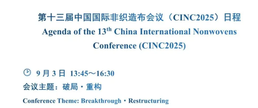 为深入贯彻新发展理念、推动构建新发展格局,有力推进非织造布行业迈向高端化、智能化、绿色化、融合化,助力纺织现代化产业体系建设,中国产业用纺织品行业协会定于2025年9月3日在上海召开第十三届中国国际非织造布会议(CINC2025)。本次会议以“破局·重构”为主题,邀请非织造布行业知名专家和企业家,共同剖析非织造布产业发展格局的演变,深入探讨新形势下非织造布行业所面临的战略机遇与发展方向。